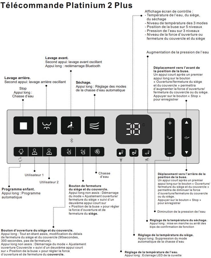 Le WC Japonais Monobloc Luxe PLATINIUM 2 Plus dispose de la fonctionnalité suivante :